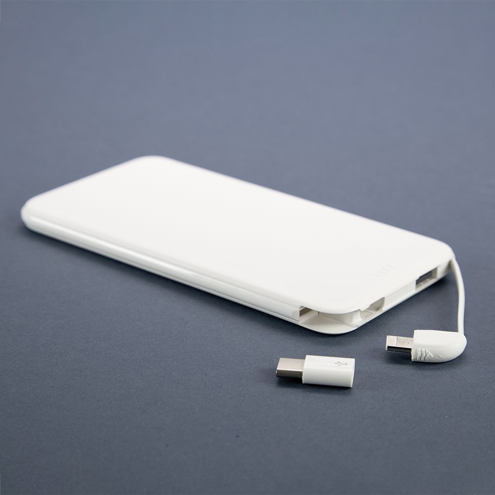 Powerbank with integrated multi-charging cable with Lightning, Type C and Micro-USB adapter